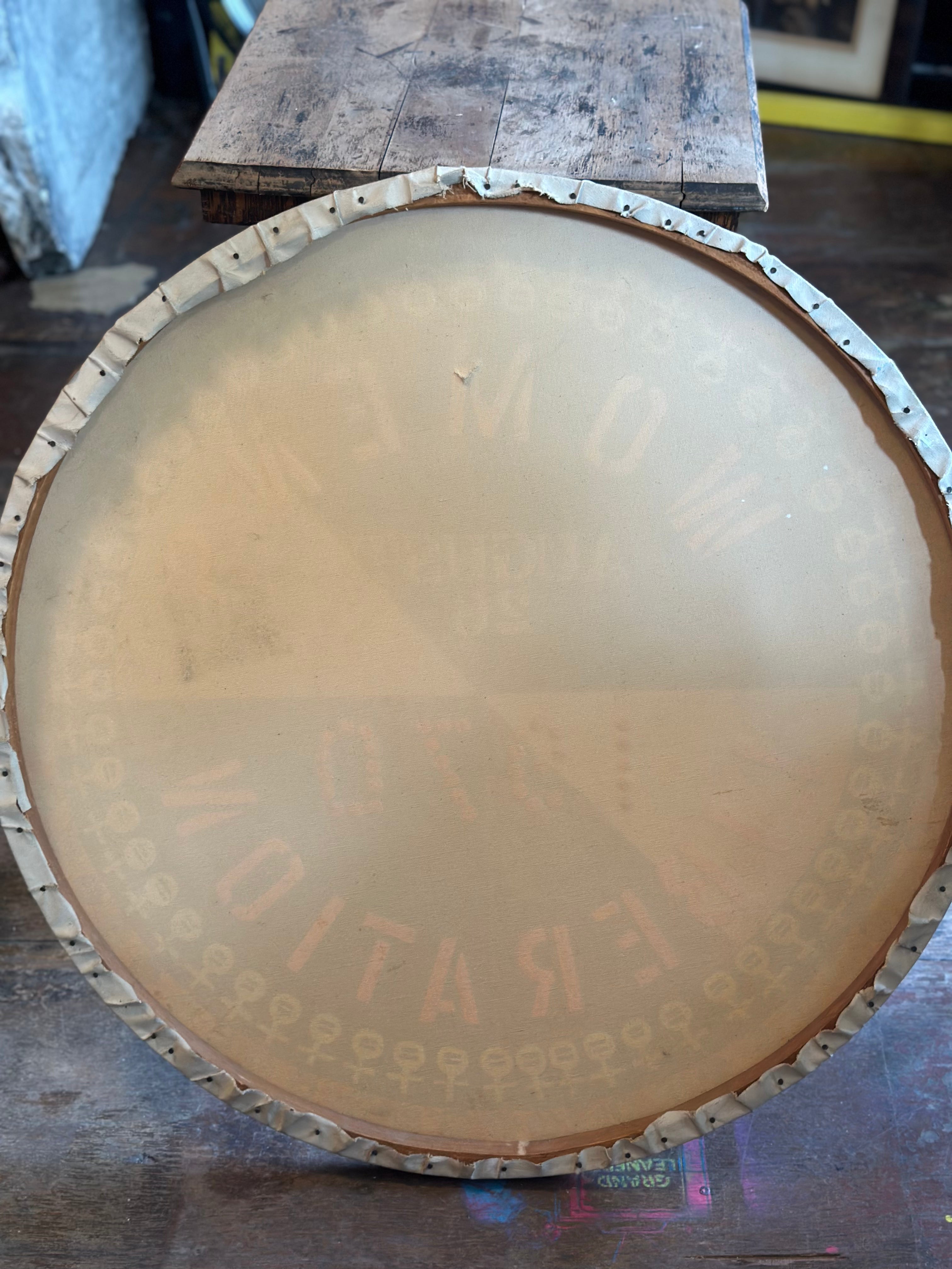 True museum piece. This is a piece of handmade protest/march art that was made to commemorate the anniversary of the 19th Amendment. It was rescued from the basement of a church in the West Village of NYC. One of a kind. Should be in Smithsonian