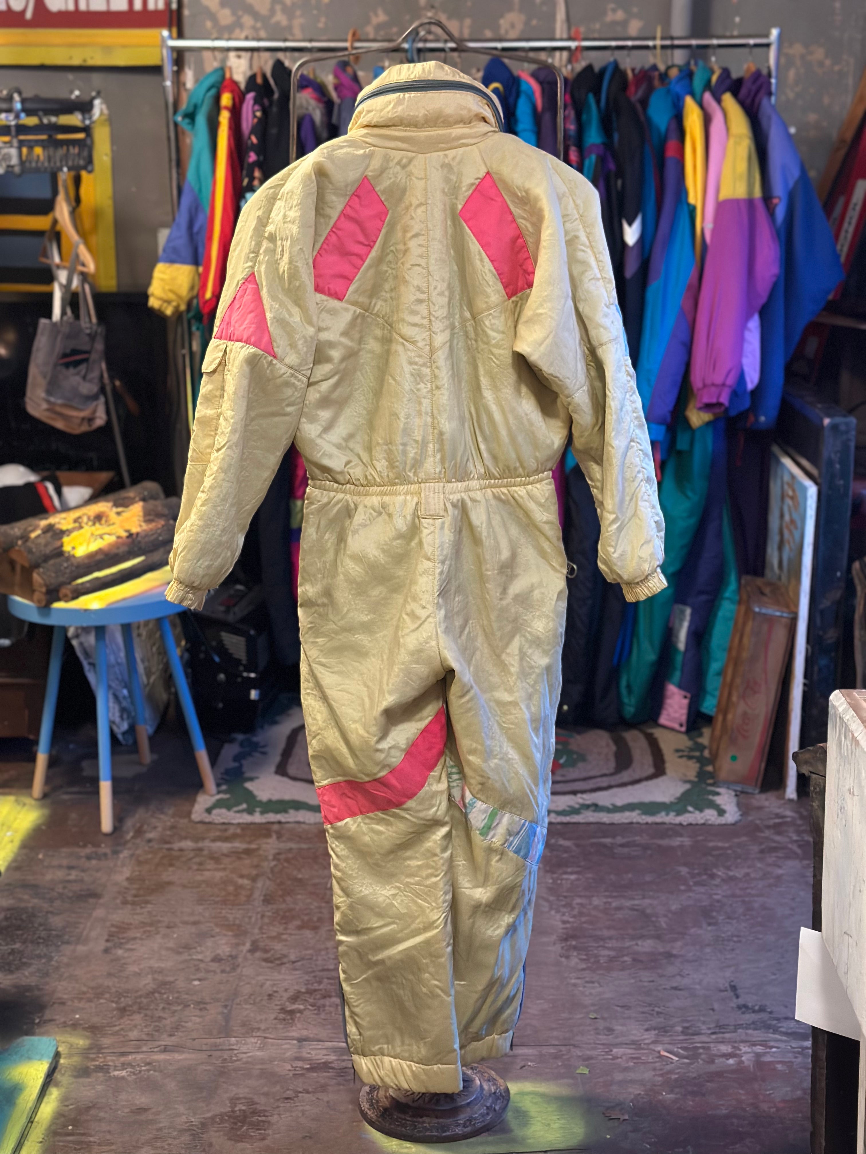 Vintage 80/s90s Butter and Neon Pink Ski Suit